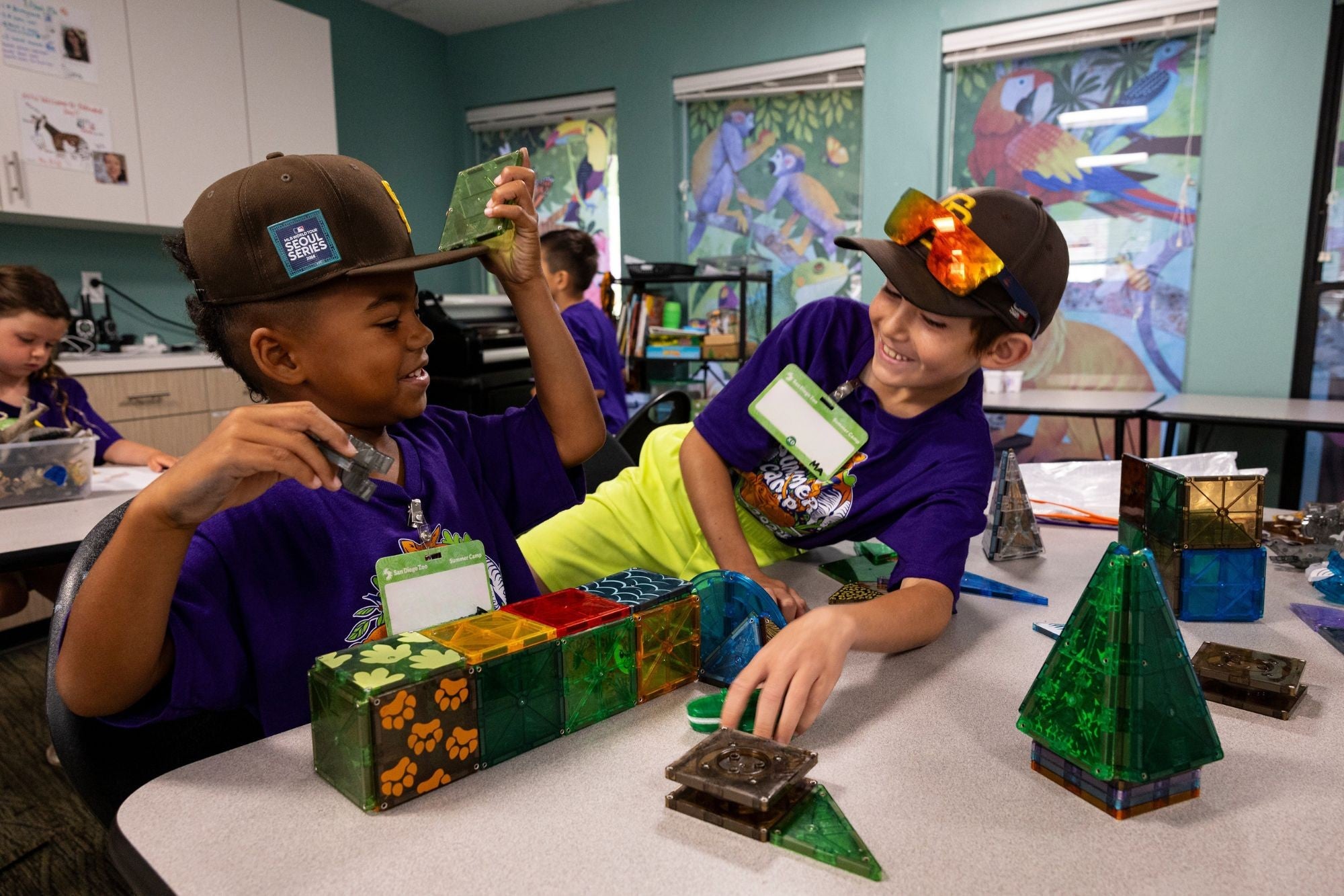 Need a little extra time? Your campers can join the Zoo Education team for our Extended Fun program, allowing you to drop off and pick up campers outside regular camp hours. And while Summer Camp has a fast-paced schedule and everyone moves as a unit, in Extended Fun, campers can choose their activity. They can play a game, watch a movie, have some outdoor fun, or make some creative art! After a day of structured programming, many campers crave some downtime. Extended Fun also allows secure childcare for caregivers who need to drop off campers between 7:30 and 8:45 a.m. or need to pick them up between 3 and 5:30 p.m.